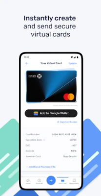 In this easy-to-use app, you can instantly create and send secure virtual cards to anyone in your network, improve oversight of spending, and automate reconciliation.