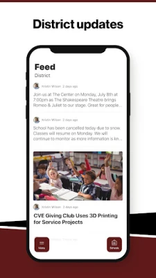 DISTRICT UPDATES In the Live Feed is where you'll find updates from the administration about what's going on in the district right now. Whether that's celebrating a student's success, or reminding you about an upcoming deadline.