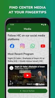 - Prayer times and prayer time notifications - View upcoming programs at the center - Receive the latest news from the center, including moon sightings, news of deaths, births, engagements, and more. - Donate to the center via Google Pay - Watch programs live in the app