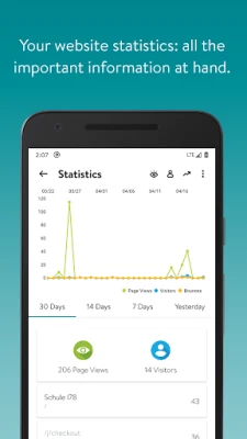 As a JimdoPro or JimdoBusiness customer, you can see the most important statistics for your website directly from your Android device—like visitors, page views, and more.