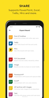• Share to your favorite formats and cloud services to continue working on your ideas digitally—supports Miro, Trello, Dropbox, PowerPoint, Excel, PDF, and more.
