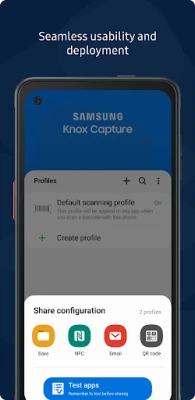 Samsung Knox Capture is a barcode scanner solution, data wedge, and a keyboard wedge all in one. Easily capture, process and transfer data (wedge) into business application(s) without writing a single line of code.