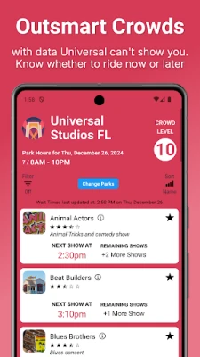 -Universal’s official app doesn’t show you the waits for many attractions or character greetings. LINES has wait times for more rides, shows, and character greetings than even Universal’s own app.
