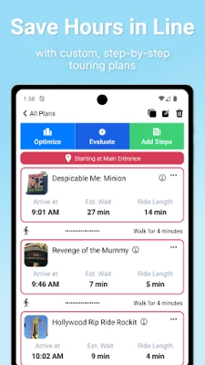 -Customized step-by-step touring plans for both Universal Studios Florida and Islands of Adventure parks, including The Wizarding World of Harry Potter areas of each park. You tell LINES which rides you want to see, and LINES will create a step-by-step itinerary showing when to go to each ride to avoid long lines. You can even change your plans while you’re in the park!